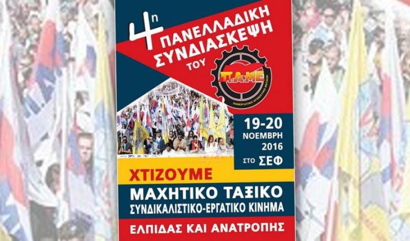 Στις 19 και 20 Νοεμβρίου 2016 στο στάδιο Ειρήνης και Φιλίας πραγματοποιείται η 4η Πανελλαδική Συνδιάσκεψη του ΠΑΜΕ.