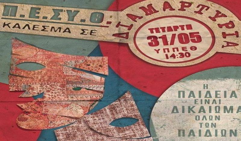 Το ΔΣ του Συλλόγου Εκπαιδευτικών Π.Ε. Βύρωνα – Καισ/νής – Παγκρατίου «ΡΟΖΑ ΙΜΒΡΙΩΤΗ» στηρίζει την κινητοποίηση που πραγματοποιεί ο Πανελλήνιος Επιστημονικός Σύλλογος Θεατρολόγων την Τετάρτη 31 Μαΐου στις 2.30 μ.μ. στο Υπουργείο Παιδείας την Τετάρτη 31 Μάη 2017 στις 2.30 μ.μ.