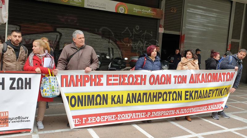 Παράσταση διαμαρτυρίας για τα προβλήματα των αναπληρωτριών εκπαιδευτικών έκαναν το μεσημέρι της Πέμπτης 28 Μάρτη στο υπουργείο Εργασίας, η Ομοσπονδία Γυναικών Ελλάδας, η Πρωτοβουλία Αναπληρωτών - Αναπληρωτριών και Ωρομίσθιων Εκπαιδευτικών και οι Σύλλογοι Εκπαιδευτικών Πρωτοβάθμιας Εκπαίδευσης «Ρόζα Ιμβριώτη», «Γ. Σεφέρης», «Ο Σωκράτης», «Νίκος Πλουμπίδης», Παλαιού Φαλήρου και Χαϊδαρίου.