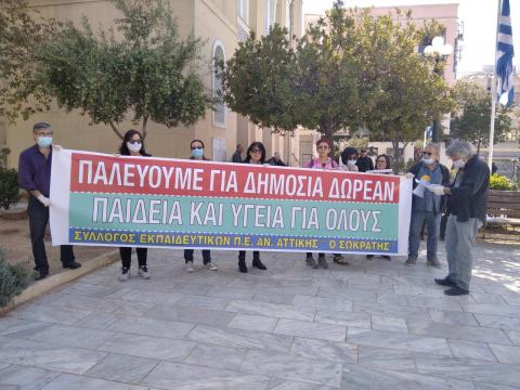 Από το πρωί χθες Τρίτη 28/4/2020, ο Σύλλογος μας συμμετείχε στην κινητοποίηση των εργαζομένων του Δήμου Ηλιούπολης, έξω από το Δημαρχείο της πόλης, όπου ενημερώσαμε τον λαό της περιοχής μας για το αντιδραστικό περιεχόμενου του νομοσχεδίου της κυβέρνησης της Ν.Δ. για την Παιδεία.