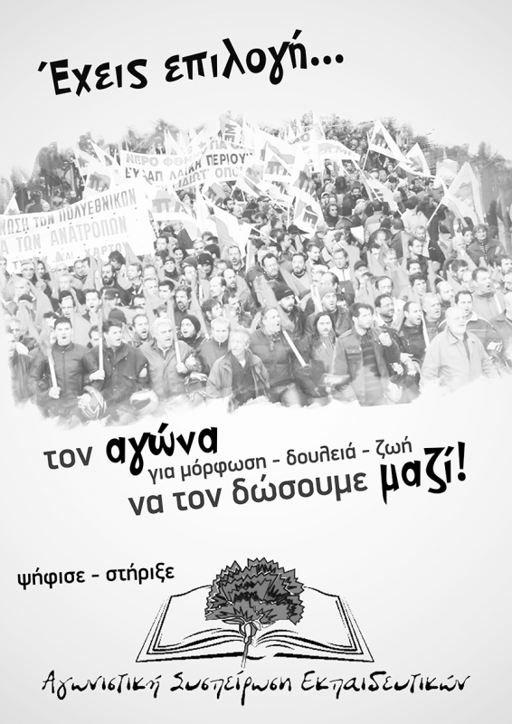 Με τη συμμετοχή σου στον αγώνα και την ψήφο σου στο ψηφοδέλτιο της Αγωνιστικής Συσπείρωσης Εκπαιδευτικών: