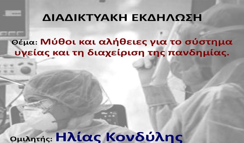 Διαδικτυακή εκδήλωση με θέμα: "Μύθοι και αλήθειες για το σύστημα υγείας και τη διαχείριση της πανδημίας”