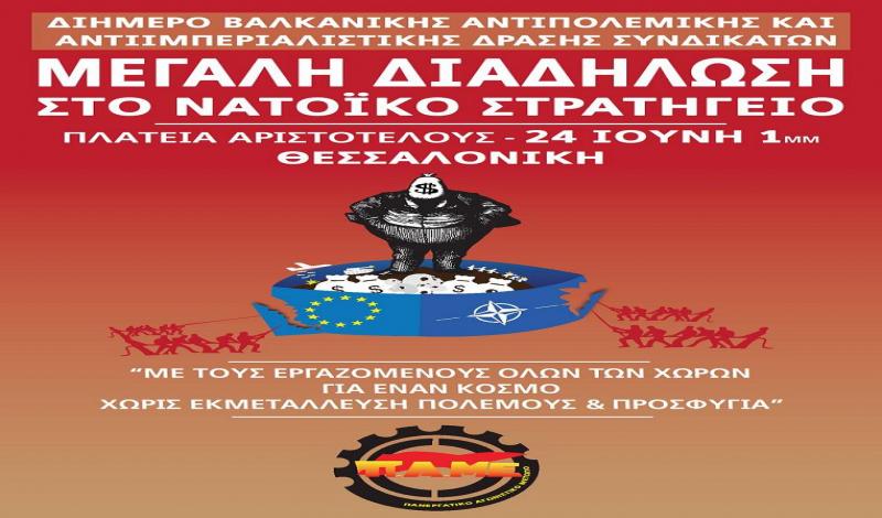 Σ.Ε.Π.Ε. «Ρόζα Ιμβριώτη»: Αντιπολεμική - ΑντιΙμπεριαλιστική διαδήλωση των συνδικάτων 24/6-1μμ - Πλ. Αριστοτέλους, Θεσσαλονίκη