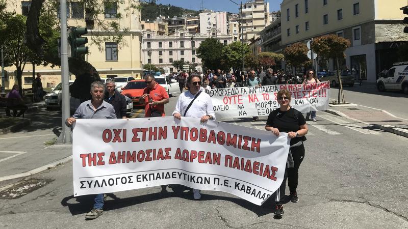 Στην Καβάλα, εκπαιδευτικοί, γονείς και μαθητές πραγματοποίησαν κινητοποίηση στην πλατεία Καπνεργάτη και στη συνέχεια πορεία στους δρόμους της πόλης.